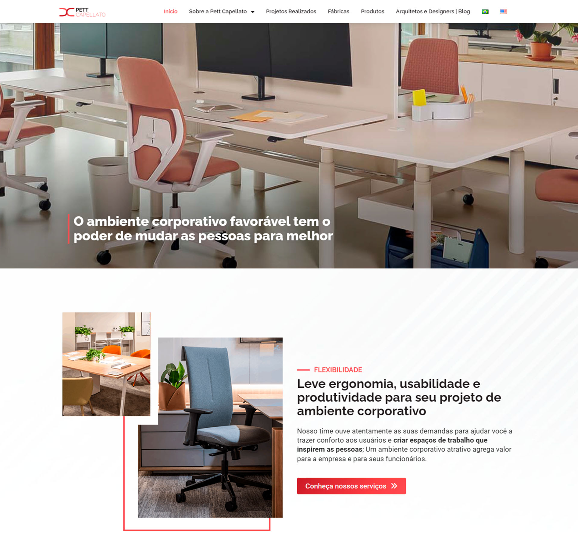 O site foi desenvolvido no modelo Site corporativo com Blog de Conteúdo para a Pett& Capellato, um Hub de Soluções para arquitetos e designers de ambientes corporativos.